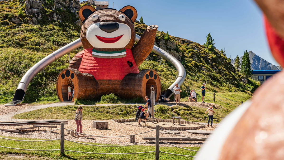Once, a giant lived in the Tuxertal who was driven away by the wild maidens of the Tuxertal. What was previously unknown is that the giant also had a playmate in the form of a cuddly bear named Pepi. The giant lost Pepi during his flight, and Pepi has since decided to stay on Penkenjoch forever because there are so many children there. He is now the namesake for all activities related to children at Penkenjoch. You can learn the whole story of Pepi and how he came to Penkenjoch at our Granatalm.